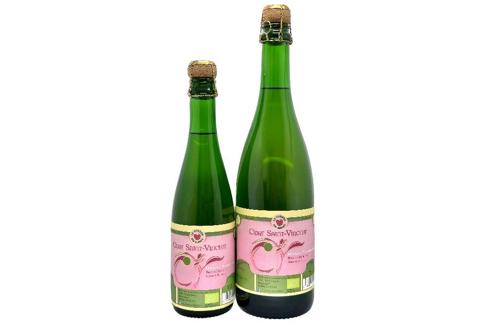 Enfin notre « Cidre Saint-Vincent » est issu exclusivement de nos reinettes bio. Les fans aiment le qualifier de Mousseux de pommes car il se distingue d’un cidre classique.